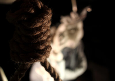 La tragedia es cíclica, sólo cambia la perspectiva desde donde se mira. Un metrónomo que denota y denuncia el paso del tiempo, la aparición y la salida de esa denuncia, y después el recomienzo de ese ciclo, siempre desde un nuevo ángulo. Un sinfín de edictos que cuelgan sobre las cabezas de todxs, siendo arrojados y repartidos permanentemente…