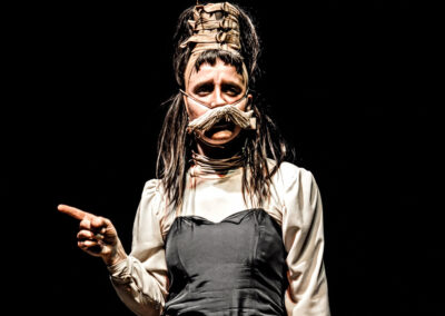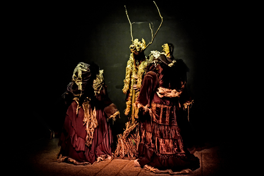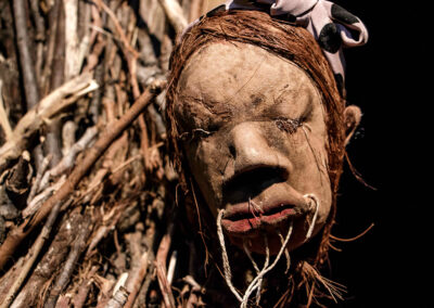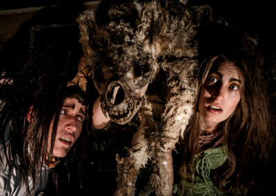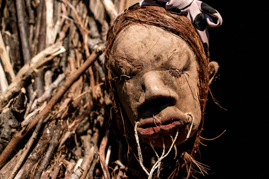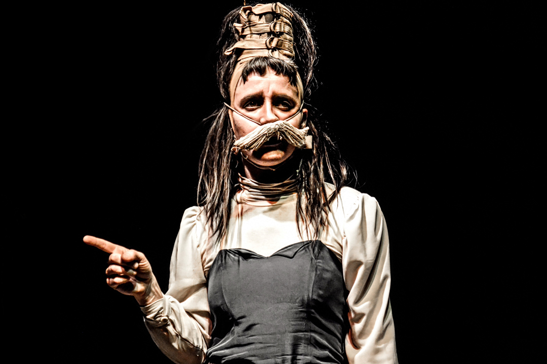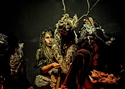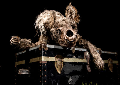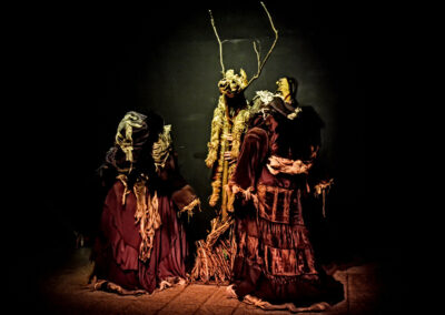 Manipuladores personajes, una estética que no incluye retablos clásicos sino escenografía, que no es sutil en la creación de sus muñecos-bestias.