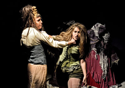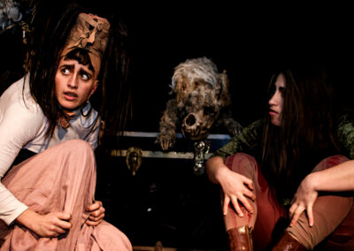 Están a mitad de camino en el medio de la nada. Huyen, huyeron y seguirán huyendo. Se atrincheran una y otra vez, mientras retumban estridentes las risas que se mofan del terror que las acecha, de la horda que las persigue, del miedo que las inventa. Pancha y Lorenza se disponen a contarnos cada una de las instancias en las que se construye el miedo.